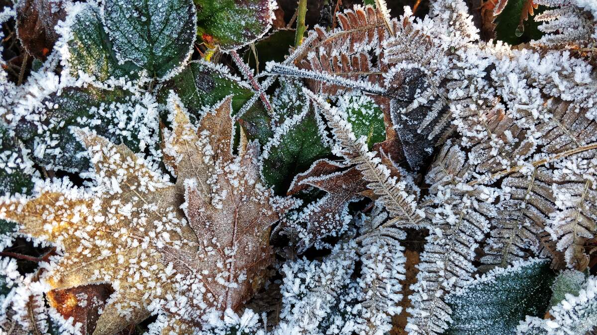 The grass is frozen and stepping on the lawn breaks the blades
