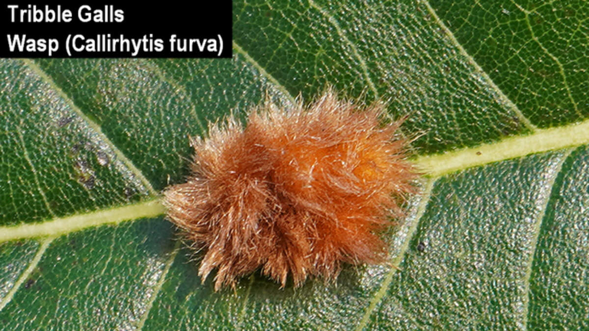 Neither the wasp nor its unusual hairy-looking gall has common names that are approved by the Entomological Society of America (ESA). You'll find a range of common names applied to this gall online from "plush galls" to "hairy oak galls." However, the galls bear a striking resemblance to a miniature version of Tribbles; the fictional alien species (truly) that overran the Enterprise in the 1967 Star Trek episode titled "The Trouble with Tribbles." As a Trekkie, I've taken advantage of the ESA common name being up for grabs.