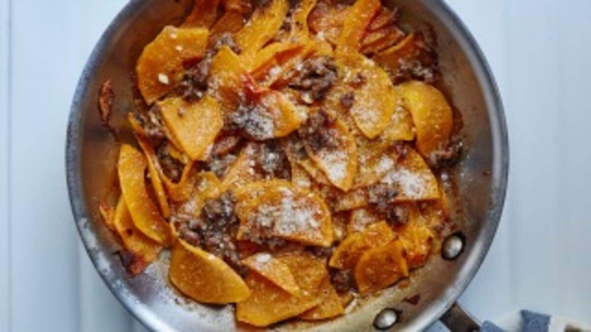 Pour into medium heatproof skillet, cover with foil, and bake 20 minutes. Remove foil and continue to bake until squash is tender and lightly browned around the edges, 20–30 minutes more.