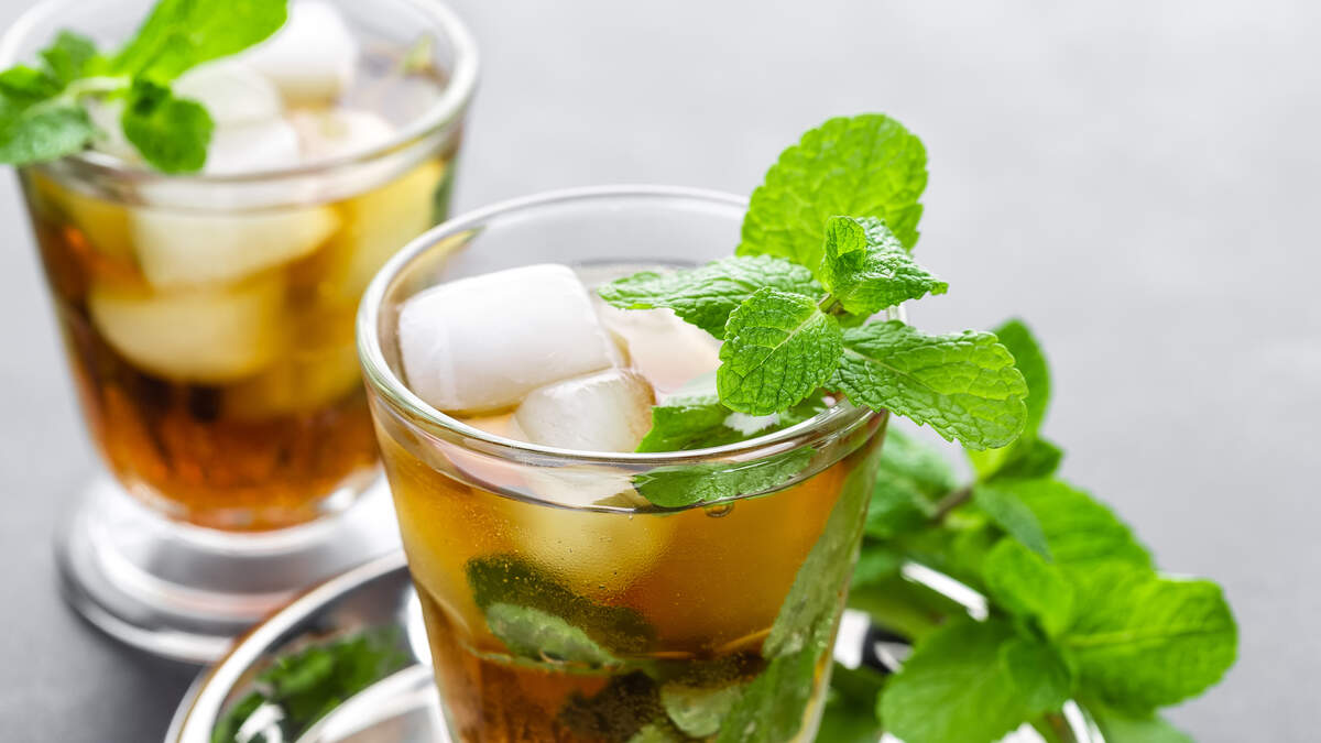 Fill a julep cup or 12 oz. glass with crushed ice.
