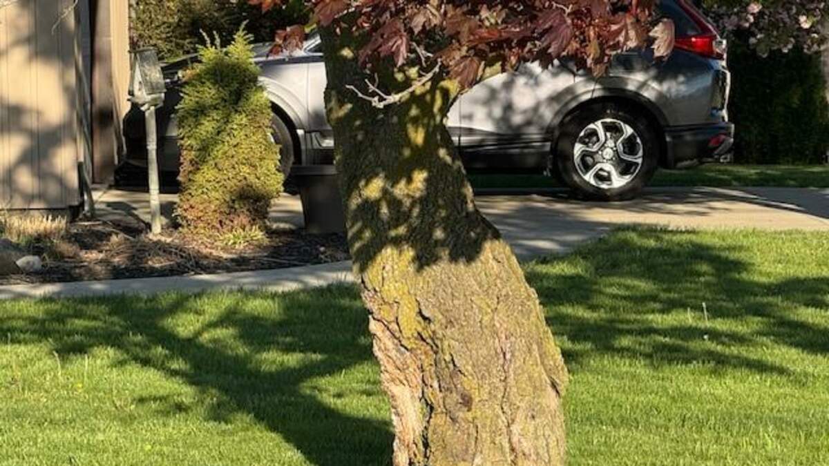 Damage to the trunk can occur from a tree being hit by a lawnmower.