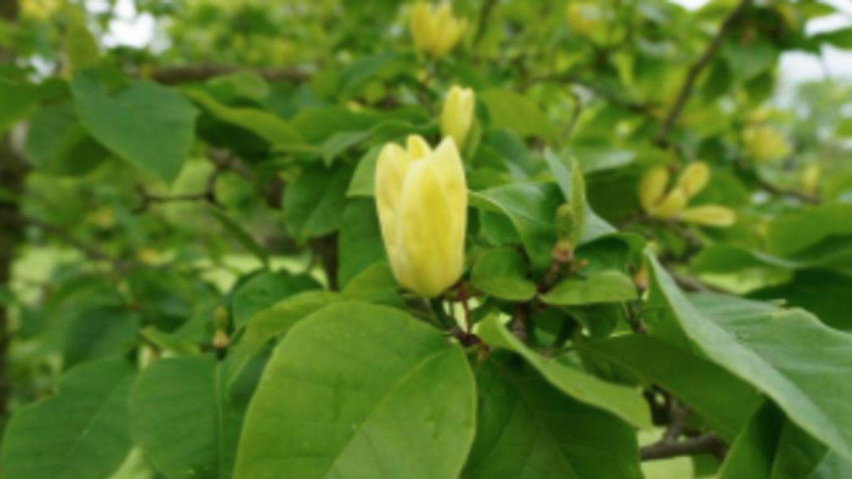 About two weeks ago, I was doing some yard work around one of the prized plants of the Drapescape; specifically, a magnolia, Magnolia X brooklynensis 'Yellow Bird'. It is a hybrid cross of our eastern native cucumber magnolia, Magnolia acuminata and M. lilliflora. This year the gorgeous, incredible floral display of beautiful three-inch tall, vase-shaped blooms with butter-yellow petals, has been going on for weeks! The large elliptical-shaped leaves are 4-8 inches long and 4-6 inches wide. I meandered over underneath the Magnolia to trim up the grass and I was shocked to see holes in the young, expanding leaves! It was only the first week of May— so what in the world was wreaking holey havoc with the leaves?